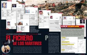 Interviú publica esta semana parte de esas fichas. Son curiosas. En ellas se anota el lugar de procedencia del candidato a morir, los efectos que entrega (teléfonos, mp3, dinero…) y el número de su familia, supongo que para avisarla cuando cumpla su misión. Entre todas las fichas de Sinjar hay una perteneciente a un marroquí de Casablanca que dice haber llegado desde España. Se llama Badr Shuri y en los archivos policiales no hay ni rastro de él. Policía y Guardia Civil le buscan. Por si ha vuelto de Irak con los galones de veterano, lo que le convertiría en un tipo muy peligroso.