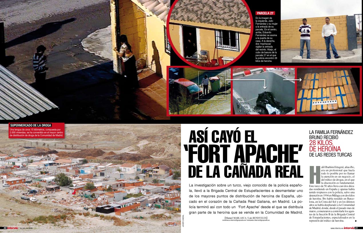 La Cañada Real Galiana se ha convertido en los últimos años en uno de los mayores centros de venta de droga de la Comunidad de Madrid. La policía tiene enormes dificultades actuar allí, debido a la estructura de la barriada y al gran número de aguadores que trabajan para los traficantes. Por eso, la actuación que os contamos esta semana en Interviú tiene aún más mérito. La policía intervino 28 kilos de heroína –una cifra estratosférica cuando hablamos de incautaciones de caballo– a un clan gitano que residía en la Cañada Real. Además, los agentes de la Sección II de la Brigada Central de Estupefacientes detuvieron a dos turcos, responsables del envío de la mercancía.