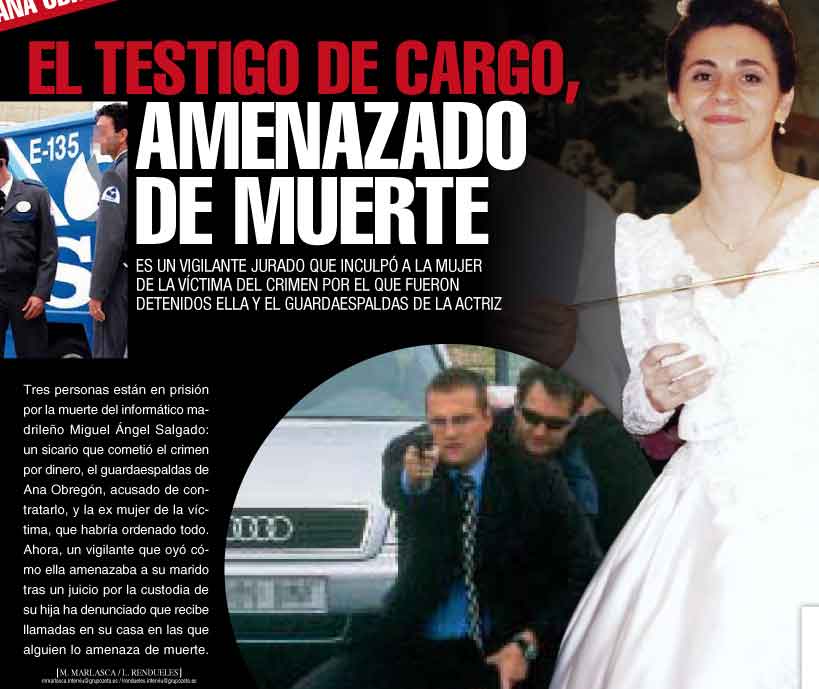 Dolores Martín Pozo, Eloy Sánchez Barba y Charles Michael Guarín Cercos siguen encarcelados por el asesinato de Miguel Ángel Salgado, muerto a tiros el 14 de marzo de 2007. La juez de Valdemoro que entiende del caso está a punto de cerrar la instrucción, pero el crimen aporta sorpresas día a día. Si en un primer momento fueron las amenazas de Ana Obregón a Jaime Cantizano, la mediación de la presidenta del Tribunal Constitucional, María Emilia Casas, esta semana desvelamos en Interviú más revelaciones.