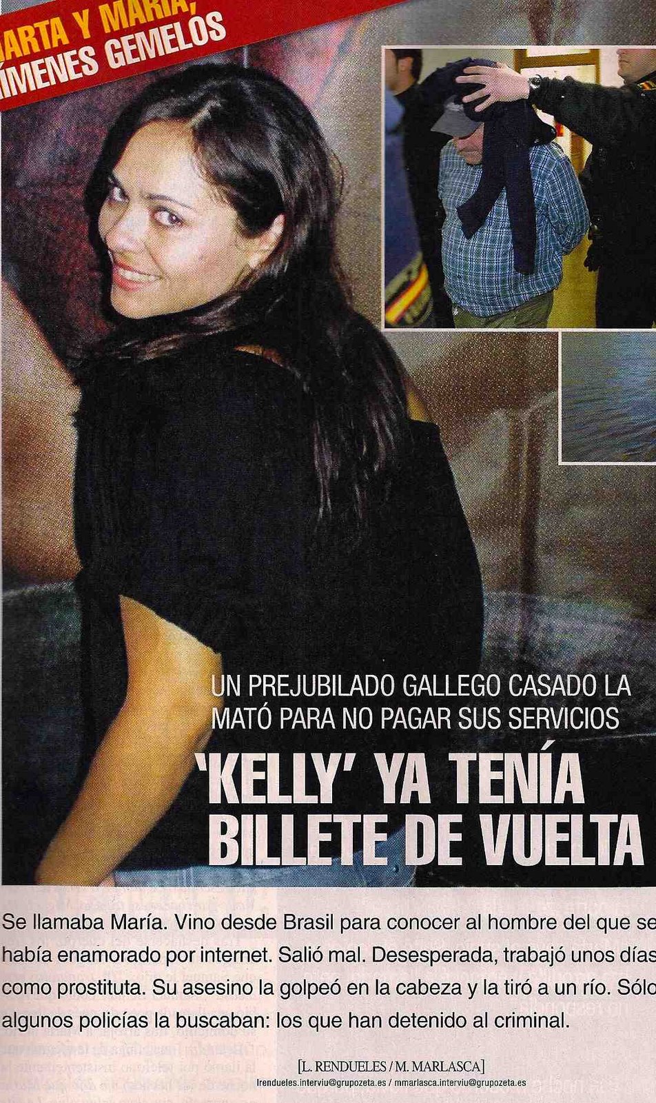 María Socorro da Silva tenía 26 años, una niña de seis años en Brasil y una madre con la que hablaba cada dos días. Murió asesinada por Ramón Fernández, un prejubilado de Orense, que la golpeó y le metió dos tiros en la cabeza para no pagarle los 80 euros que le debía. María se convertía en Kelly cuando ejercía de prostituta. Ramón fue su último cliente.