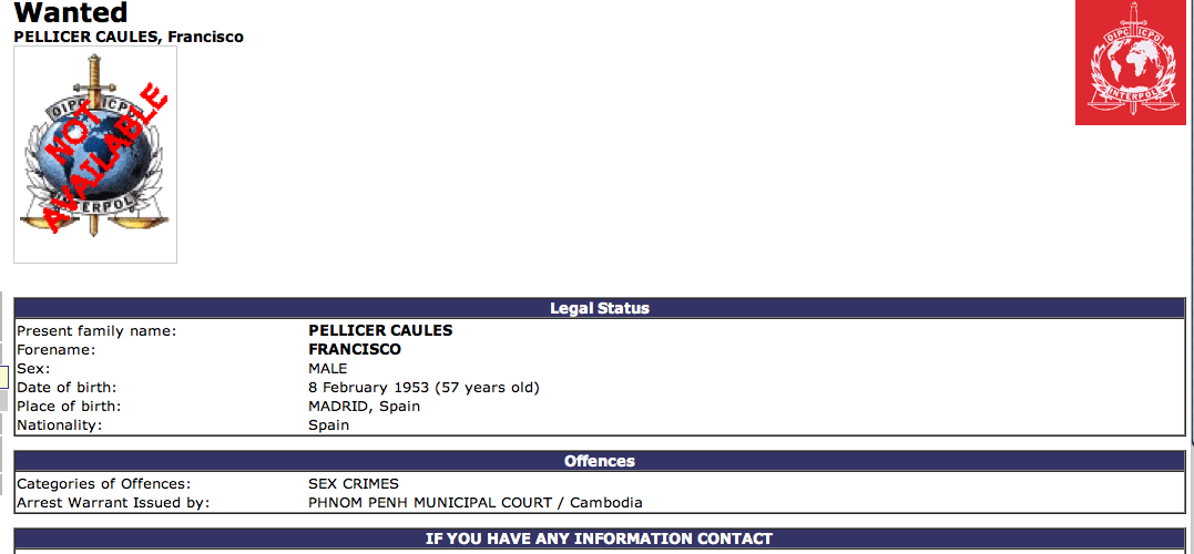 Cierto es que nosotros no somos jueces y no juzgamos ni, mucho menos, condenamos a nadie, pero tan cierto como eso es que Francisco Pellicer estaba entre las personas buscadas por Interpol, como cualquiera puede comprobar en este enlace y en la imagen que acompaña a esta entrada.