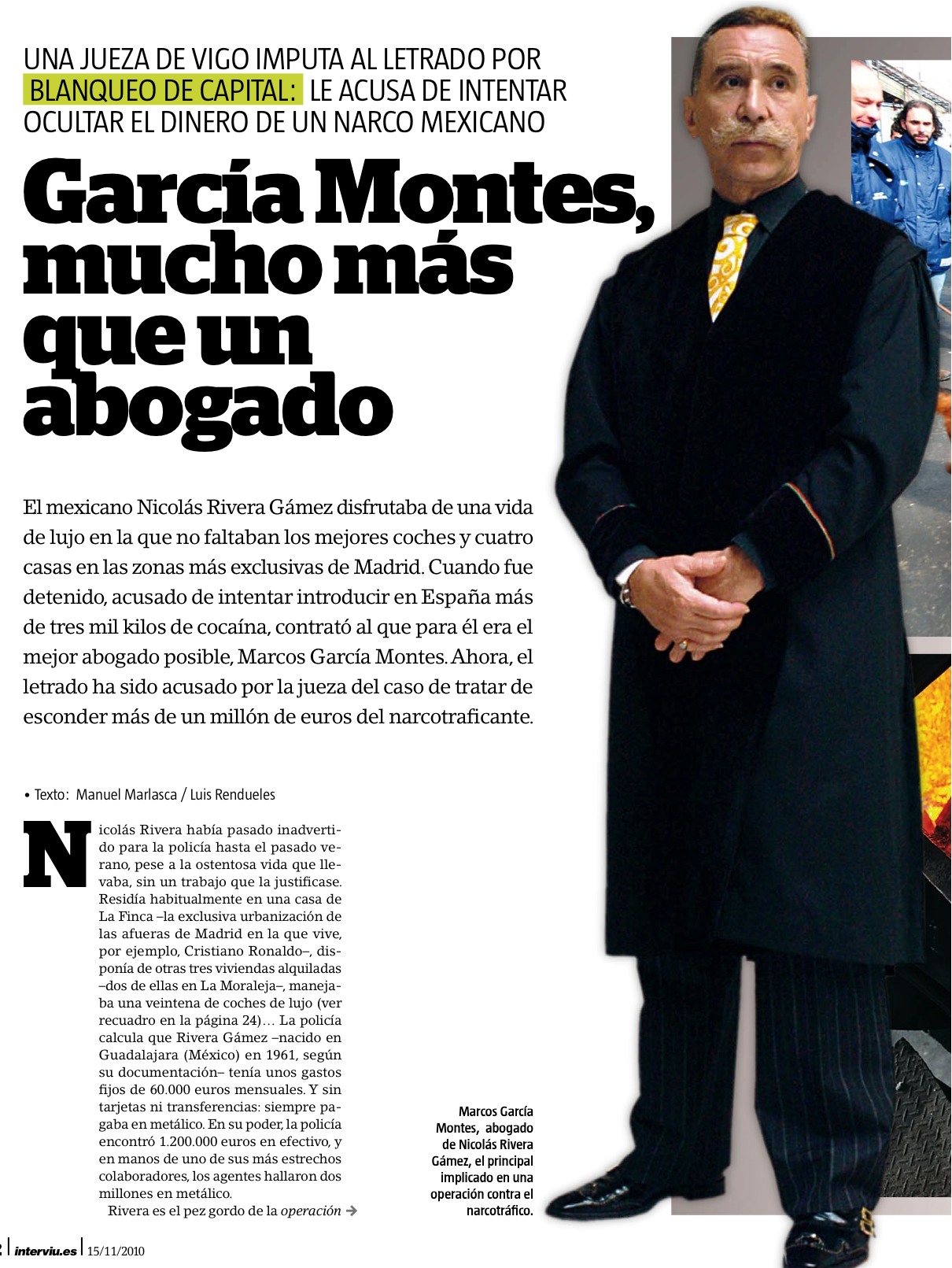 Ayer, como todos los lunes, la revista Interviú estaba en los kioscos de toda España. En su interior –con una llamada en portada–, llevábamos una noticia que nos ha costado más de un mes de trabajo: el abogado Marcos García Montes ha sido imputado por una jueza de Vigo, que le acusa de blanqueo de capitales. En la ilustración que acompaña a este post tenéis la apertura del reportaje y aquí podéis ver su resumen en la web de Interviú. Durante todo el día de ayer, numerosos medios digitales dieron la noticia, que esta mañana ha salido publicada en varios periódicos. Salvo ABC –un diario que siempre ha respetado los códigos– ningún otro medio mencionó ayer ni hoy a Interviú como fuente original de la noticia.