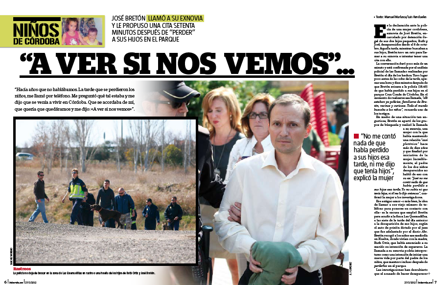 Esta semana contamos en Interviú que José Bretón, el padre de los niños desaparecidos en Córdoba desde el pasado mes de octubre, intentó citarse con una ex novia apenas 70 minutos después de denunciar que había perdido a sus hijos. Mientras la policía y su familia trataban de dar con los pequeños en el parque Cruz Conde, él llamó a una mujer a la que no veía desde hacía muchos años, a la que no comentó nada acerca de la desaparición de los pequeños, ni siquiera le dijo que era padre.